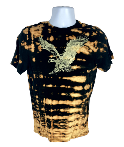 Striped Eagle Bleach Dye T-Shirt - L