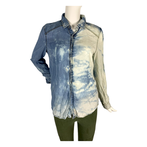 Blue & White Split Dye Long Sleeve Button Down- S/M