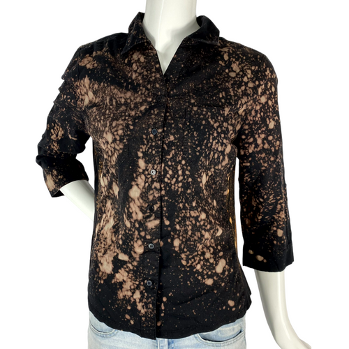 Green Spiral 3/4 Sleeve Womens Button Down- S/M